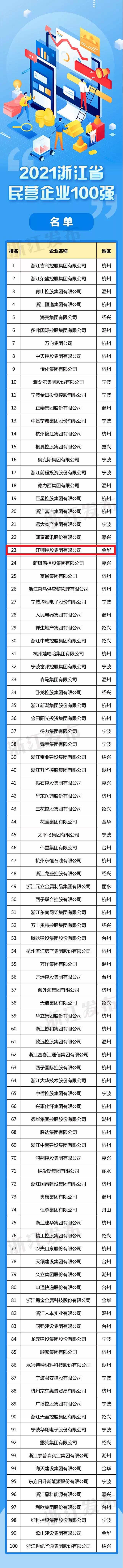 9月23日,省市场监管局、省工商业联合会联合公布了“2021年浙江省民营企业100强”榜单。GA黄金甲集团以2020年销售收入550亿元排名浙江省第23位、金华市第1位。